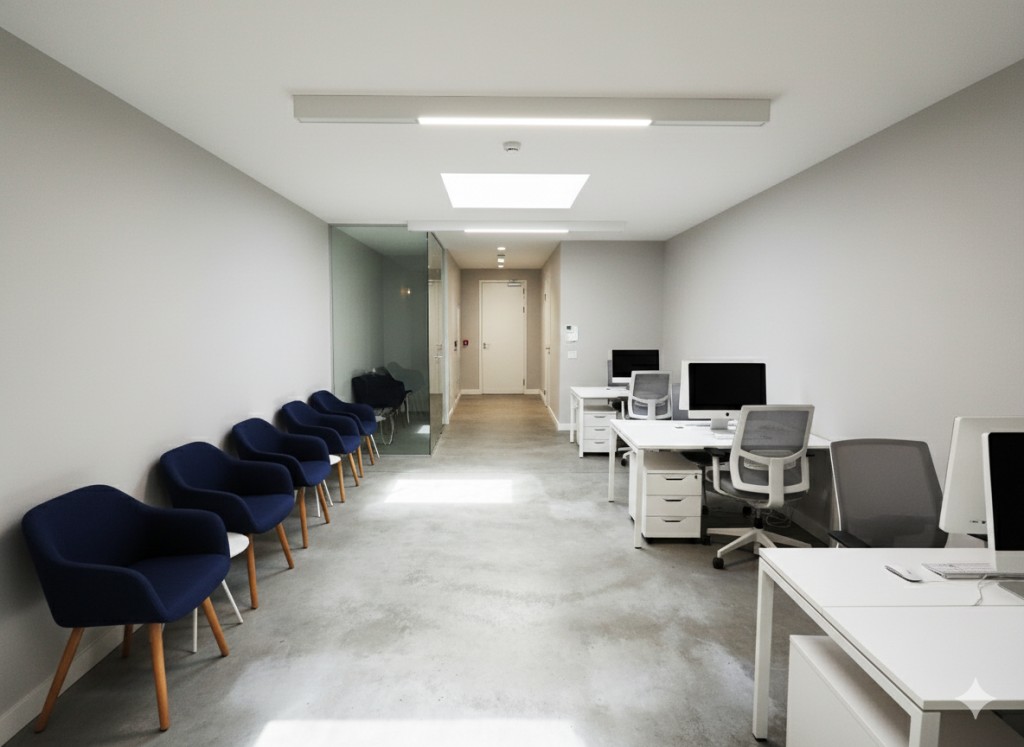 Het pand werd in 2016 volledig gerenoveerd, waarbij ze voorzien werd van een nieuwe, onderhoudsvriendelijke betonnen gietvloer en een mooie lichtstraat tot helemaal achteraan.